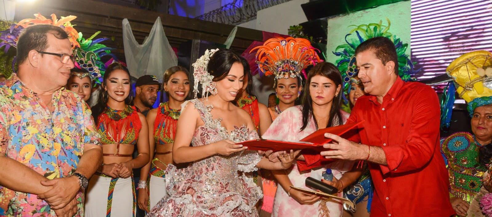 El Acalde Rodolfo Ucrós Rosales entregó el decreto que acredita a María Victoria Vargas Pacheco como Reina del Carnaval de Soledad 2024.