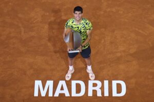 “Son logros muy bonitos”, dijo Alcaraz. Mi décimo título, mi cuarto Masters 1000, defender el título en Madrid, a las puertas del (número) uno. Son cosas muy grandes, me siento muy orgulloso de los logros que estoy consiguiendo. Soy un chico ambicioso, así que vamos a Roma”.