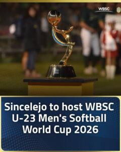 La Confederación Mundial de Béisbol y Sóftbol (WBSC) confirmó este martes 15 de abril que Sincelejo será la sede para la segunda edición de la Copa Mundial de Softbol Masculino Sub-23 que tendrá lugar en el 2026.