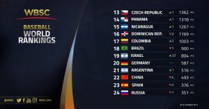 El seleccionado colombiano de béisbol subió al puesto Nº 17 en el ranking mundial, con 1.003 puntos, luego de que la Confederación Mundial de Béisbol publicara la clasificación mundial oficial WBSC, tras la reciente celebración del Clásico Mundial de 2017, en el cual participaron 16 naciones y nuestro país logró la posición 11, con 400 puntos.