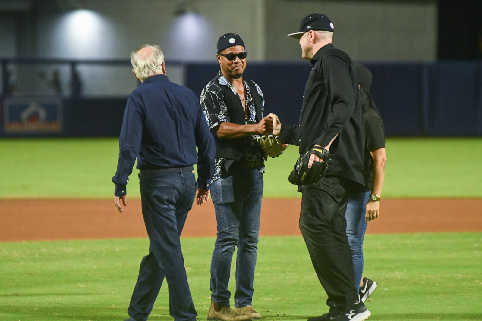 El juego tuvo un inicio cinematográfico. El reconocido director y actor norteamericano Mars Callahan y el premiado intérprete con el premio Oscar, Cuba Golding Jr., hicieron los honores de lanzar la primera bola antes del duelo entre Caimanes y Toros, el mismo que tuvo emociones cual el mejor guion de Hollywood.