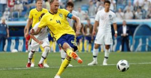 Cuando se jugaba el minuto 65 del partido, el árbitro salvadoreño, Joel Aguilar, recibió la llamada desde el centro de Videoarbitraje de Moscú y sentenció una pena máxima que fue transformada en gol por Andreas Granqvist para sentenciar el encuentro.
