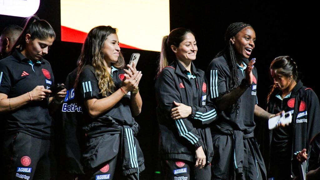 Las jugadoras y el cuerpo técnico de la Selección Colombia Femenina de Mayores fueron recibidas por una multitud en el Movistar Arena de Bogotá.