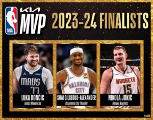 Doncic promedió 33.9 puntos, 9.2 rebotes y 9.8 asistencias por partido este año con los Mavericks y es candidato al que sería su primer MVP, al igual que Gilgeous Alexander, quien lució una media de 30.1 puntos, 5.5 rebotes y 6.2 asistencias por encuentro con el Thunder.