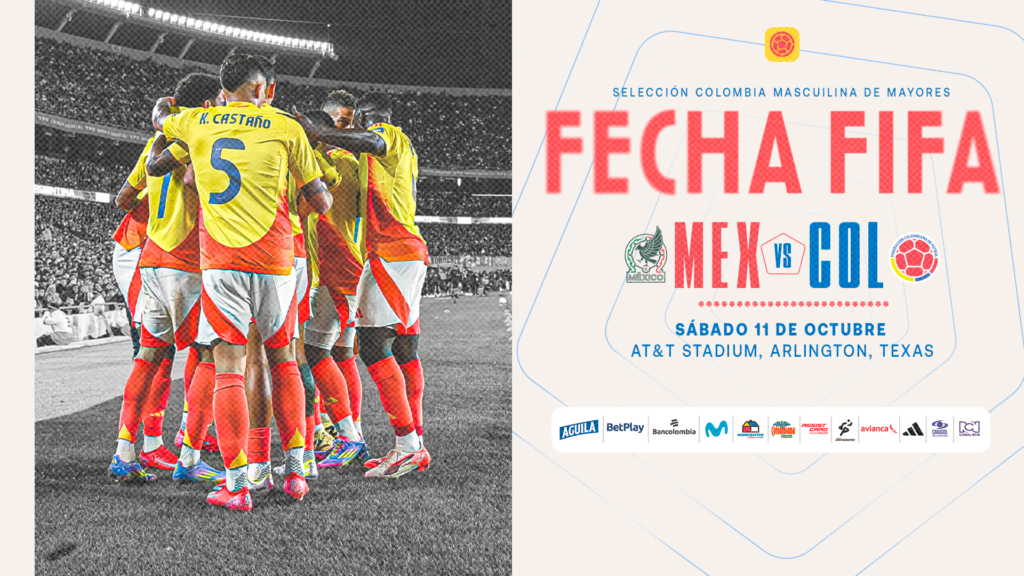 La Federación Colombiana de Fútbol informa que la Selección Colombia de Mayores disputará un importante partido amistoso internacional frente a México el próximo sábado 11 de octubre en el AT&T Stadium de Arlington, Texas, a las 8:00 de la noche (hora local).