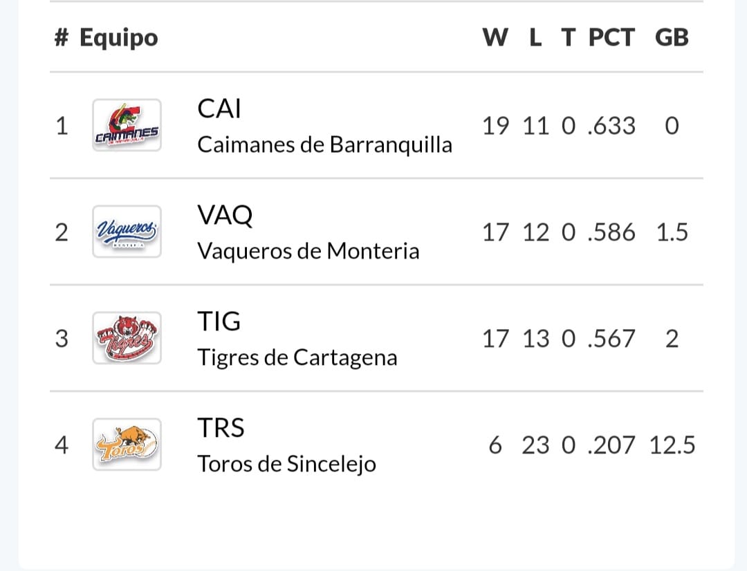 Tigres de Cartagena saca su artillería pesada para derrotar contundentemente por blanqueada 13 carreras por 0 a Vaqueros de Montería en el estadio “Abel Leal Díaz”.