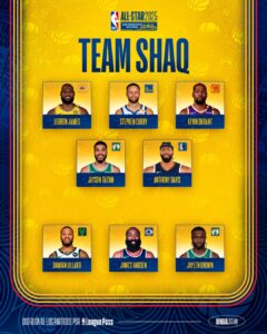 LeBron, Curry, Durant y Davis estarán acompañados por Jaylen Brown (Boston Celtics), Jayson Tatum (Boston Celtics), James Harden (Los Angeles Clippers) y Damian Lillard (Milwaukee Bucks) en el conjunto seleccionado por Shaquille O’Neal.