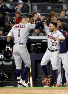 Tres innings después y sin Tanaka en el montículo, Correa bateó un mísil prácticamente hacia el mismo sector en donde aterrizó el obús de Springer para poner a los Astros arriba 6-1. Tras sentenciar la victoria en el segundo juego con un jonrón en el 11mo episodio, Correa trituró una recta de 96.2 mph de Chad Greene. El toletero boricua se tapó el oído con la mano derecha al recorrer las bases.