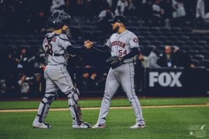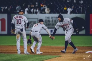 En el quinto, Ryan Pressly relevó a Greinke y ponchó a Gleyber Torres y Edwin Encarnación, ambos haciéndole swing — el primero sin poder contener el bate a un lanzamiento de piconazo.