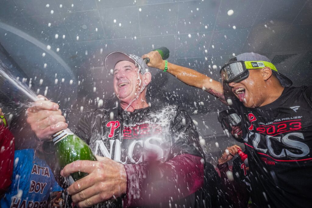 Matt Strahm ponchó al emergente Vaughn Grissom con corredores en las esquinas para asegurar la serie y enviar a los Filis en una carrera jubilosa hacia el terreno, en el comienzo de las celebraciones. Fuegos artificiales fueron lanzados en medio del festejo en el Citizens Bank Park, sonó la Campana de la Libertad y los campeones reinantes de la Liga Nacional estaban listos para volver a descorchar la champaña.