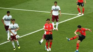Son Heung-min descontó por los coreanos en tiempo agregado con un potente disparo fuera del área, en un premio a su esfuerzo personal al generar varias acciones de peligro que amenazaron con desbaratar tanto el orden en la zaga mexicana como otra brillante actuación del arquero Guillermo Ochoa, quien se quedó a segundos de firmar su cuarta blanqueada en una Copa del Mundo.