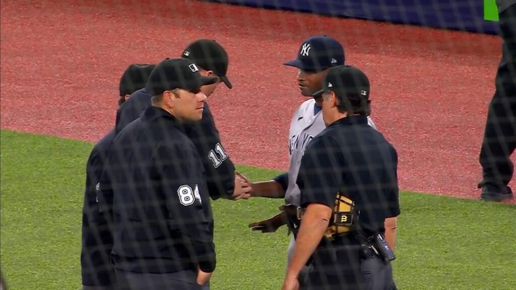 James Hoye (jefe de árbitros) dijo que la mano de Domingo Germán era la más pegajosa que había sentido, y que definitivamente no era brea (resina de pino).#Yankees#BlueJays#MLB pic.twitter.com/QhAQm9wrzg