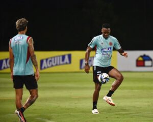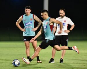 El director técnico de la Selección Colombia, Néstor Lorenzo contó por primera vez con todo el grupo de jugadores en la práctica de este martes.