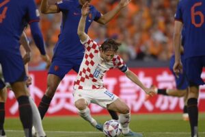 Modric cumplió la aparición número 165 con su selección. Durante el Mundial de Qatar, dijo tras guiar como capitán a Croacia a una victoria sobre Marruecos en el partido por el tercer puesto que quería continuar con el equipo nacional al menos hasta la Liga de Naciones.