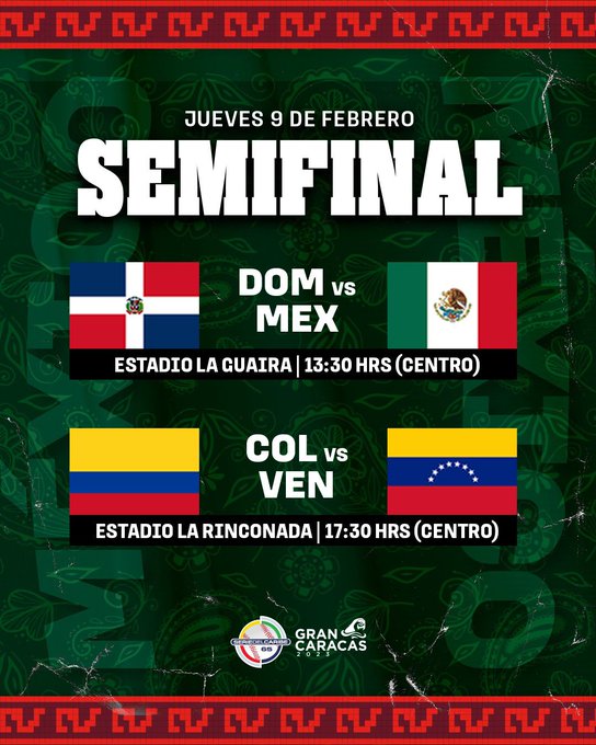 De tal manera, hoy a las 2:30 pm ET jugarán en el Estadio Forum de La Guaria República Dominicana vs. México y a las 6:30 pm ET en el Monumental Simón Bolívar de La Rinconada Colombia vs. Venezuela.