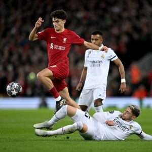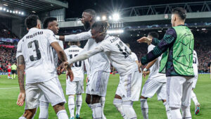 En otra demostración de jerarquía, Vinicius Junior y Karim Benzema firmaron sendos dobletes para que el gigante español noqueara a Liverpool, que recibió cuatro goles como local por primera vez en un torneo europeo.
