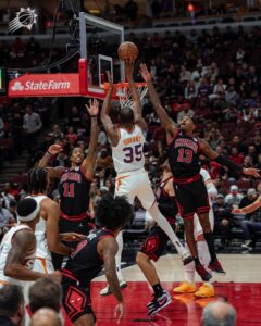 Jusuf Nurkic arremetió hacia el aro para encestar en bandeja con 7,3 segundos por disputar en la prórroga, y los Suns de Phoenix superaron el miércoles 116-115 a los Bulls de Chicago en el debut de Bradley Beal.