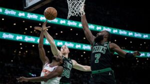 Boston aventajó hasta por 10 puntos al final del tercer cuarto, pero los Knicks se acercaron al poner el juego 91-88 cuando Brunson atinó un largo triple con ocho minutos por jugar. Tatum respondió con un triple y una falta, dándole a Boston una delantera de 95-88. Jrue Holiday embocó un triple para separarse a 10 unidades.