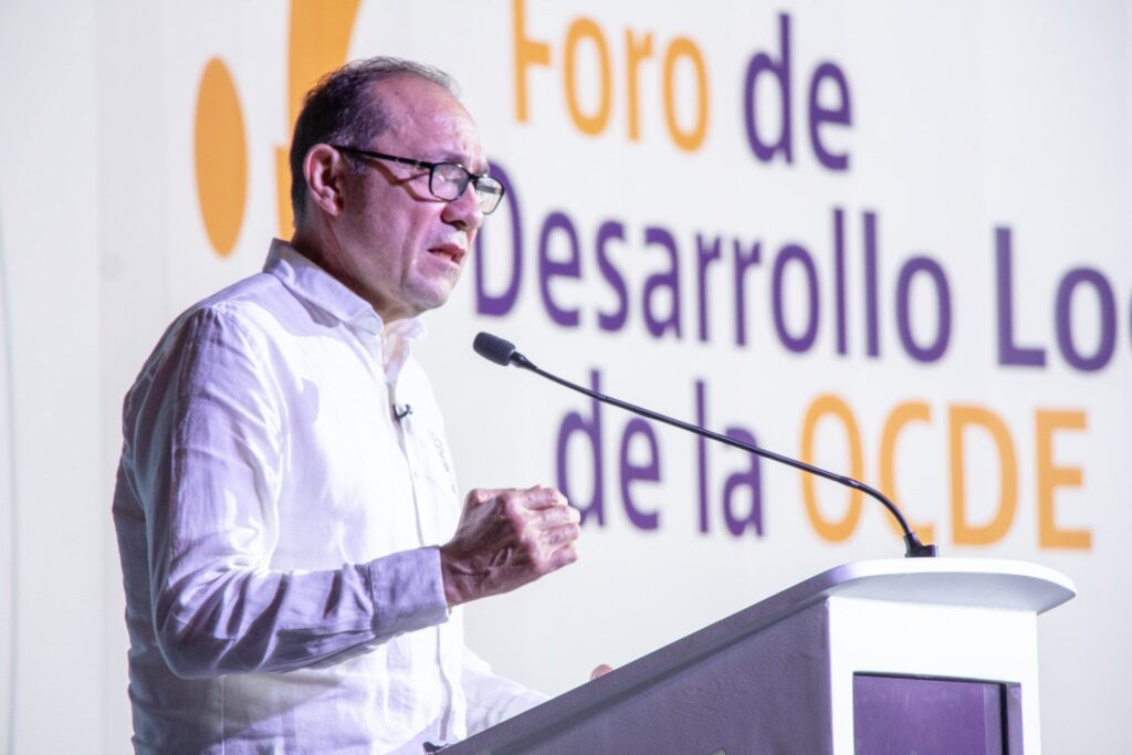 El ministro del trabajo, Antonio Sanguino, durante su intervención en el foro de la OCDE destacó el esfuerzo que ha hecho el gobierno del presidente Gustavo Petro para proteger la clase trabajadora y explicó que entre 2023 y 2025, el salario mínimo aumentó un 37,6% de manera regulada.