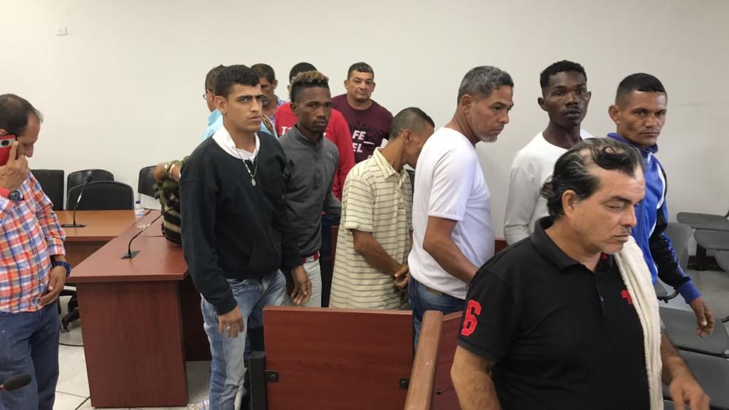 Un juez de control de garantías en Barranquilla legalizó la captura de las 15 personas y la Fiscalía imputó cargos por desplazamiento forzado, hurto agravado, tráfico de estupefacientes, homicidio y concierto para delinquir.