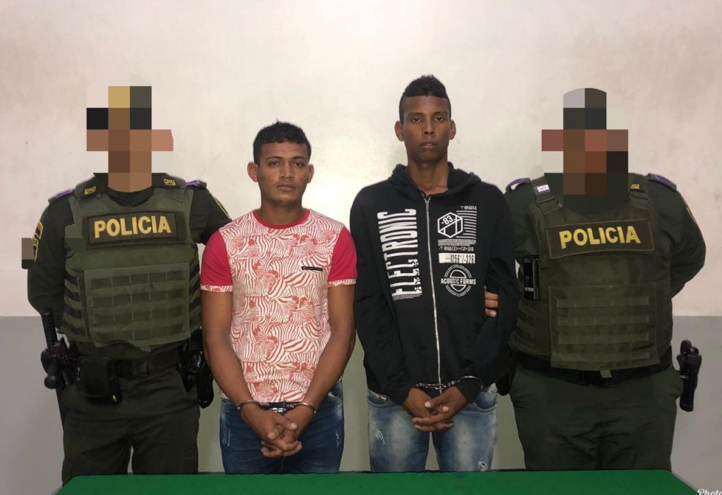 En su lucha frontal contra el delito de extorsión, la policía metropolitana de Barranquilla logró la captura en flagrancia de dos presuntos integrantes del grupo delincuencial ‘Los Costeños’, en momentos en que se encontraban repartiendo volantes a comerciantes en un sector del barrio 7 de Abril.