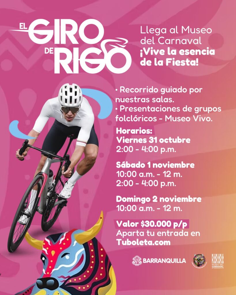 Con esta programación, el Museo del Carnaval celebra la llegada del Giro de Rigo a Barranquilla, promoviendo un encuentro entre deporte y cultura que exalta la alegría, el talento y la identidad del Caribe colombiano.
