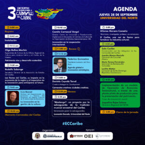 El III Encuentro Internacional de Carnavales del Caribe, cuenta con el apoyo de la Organización de Estados Iberoamericanos OEI, la Asociación de Estados del Caribe, AEC y el respaldo de UNESCO. Este evento académico considerado el más importante del Carnaval de Barranquilla, tiene como invitados especiales a líderes mundiales en innovación, representantes de los carnavales de Colombia y el Caribe e instituciones turísticas que compartirán con los asistentes, todas sus experiencias, casos de éxito y herramientas aplicables a las fiestas y organizaciones culturales.