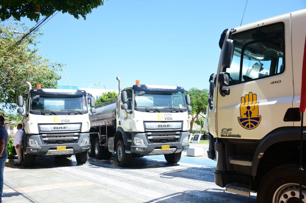 Aseguró que ahora el banco de maquinaria del departamento se fortalece con los carrotanques asignados por el gobierno nacional. En las labores de abastecimiento de agua se pasará de una entrega 35 mil litros de agua por cada viaje a 95 mil litros, lo que significa una mayor frecuencia en este suministro a las poblaciones que lo requieren.