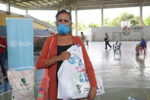 En orden y cumpliendo las medidas de bioseguridad, 61 familias galaperas dedicadas a la actividad agrícola recibieron kits de siembra; cada uno compuesto por: semillas de maíz, auyama, frijol cabecita negra, fungicida, herbicida y abono orgánico, con el objetivo que fortalezcan sus ingresos económicos.