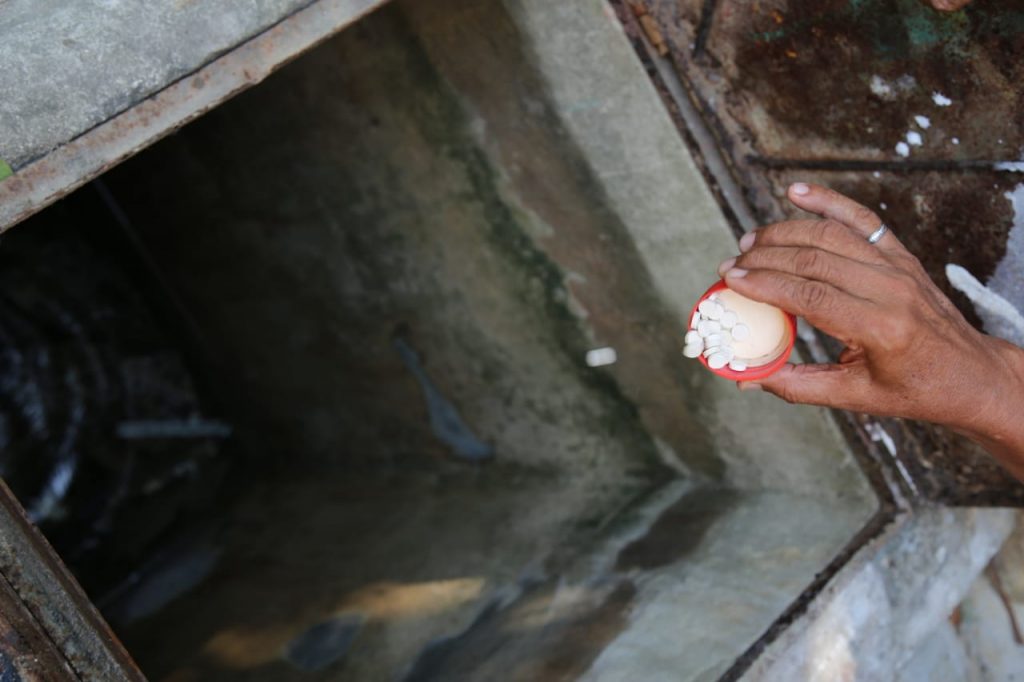 La estrategia consistente en eliminar los criaderos de mosquitos, evitando la presencia de inservibles, cómo botellas, llantas, y cualquier objeto que pueda acumular agua limpia, tapando y lavando los tanques y albercas donde se almacena agua para el consumo, mínimo semanalmente con cepillo de cerda dura o esponja y con hipoclorito de sodio.
