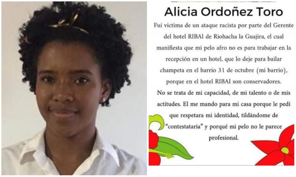 La joven Alicia Ordóñez Toto, de 22 años, denunció que fue víctima de racismo cuando pretendió laborar como recepcionista en el Hotel Ribaí en Riohacha.