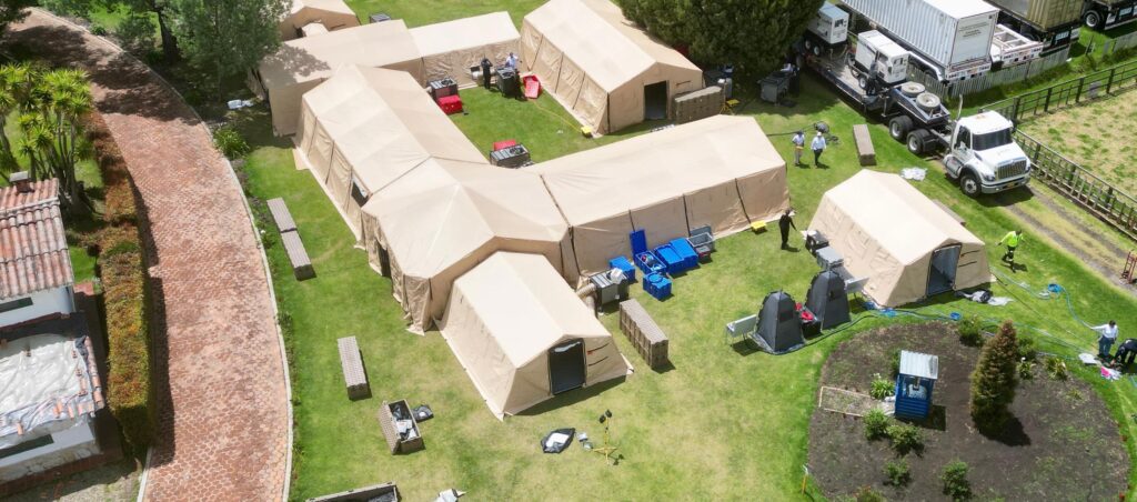 «La infraestructura está compuesta por nueve carpas interconectadas y climatizadas, equipadas con sistemas autónomos de energía y uno de saneamiento ecológico que incorpora duchas y baños secos para minimizar el impacto ambiental», indicó la UNGRD.