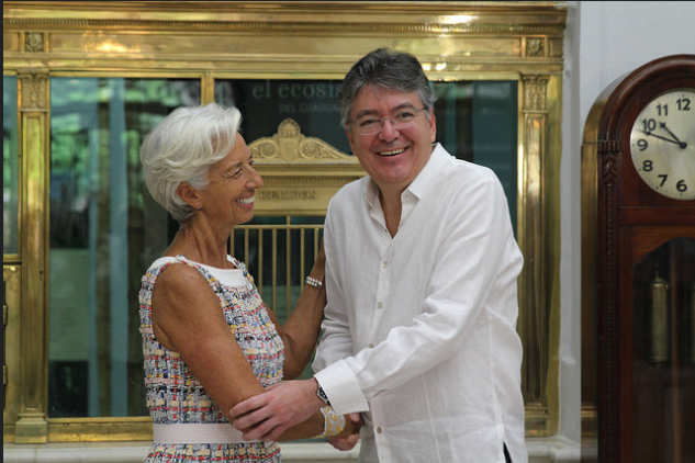 Tras una reunión con el Ministro de Hacienda, Mauricio Cárdenas, horas antes de la celebración de la firma del Acuerdo de Paz, la máxima representante del FMI dijo que el FMI ha sido testigo del ascenso del país como una fuerza económica.